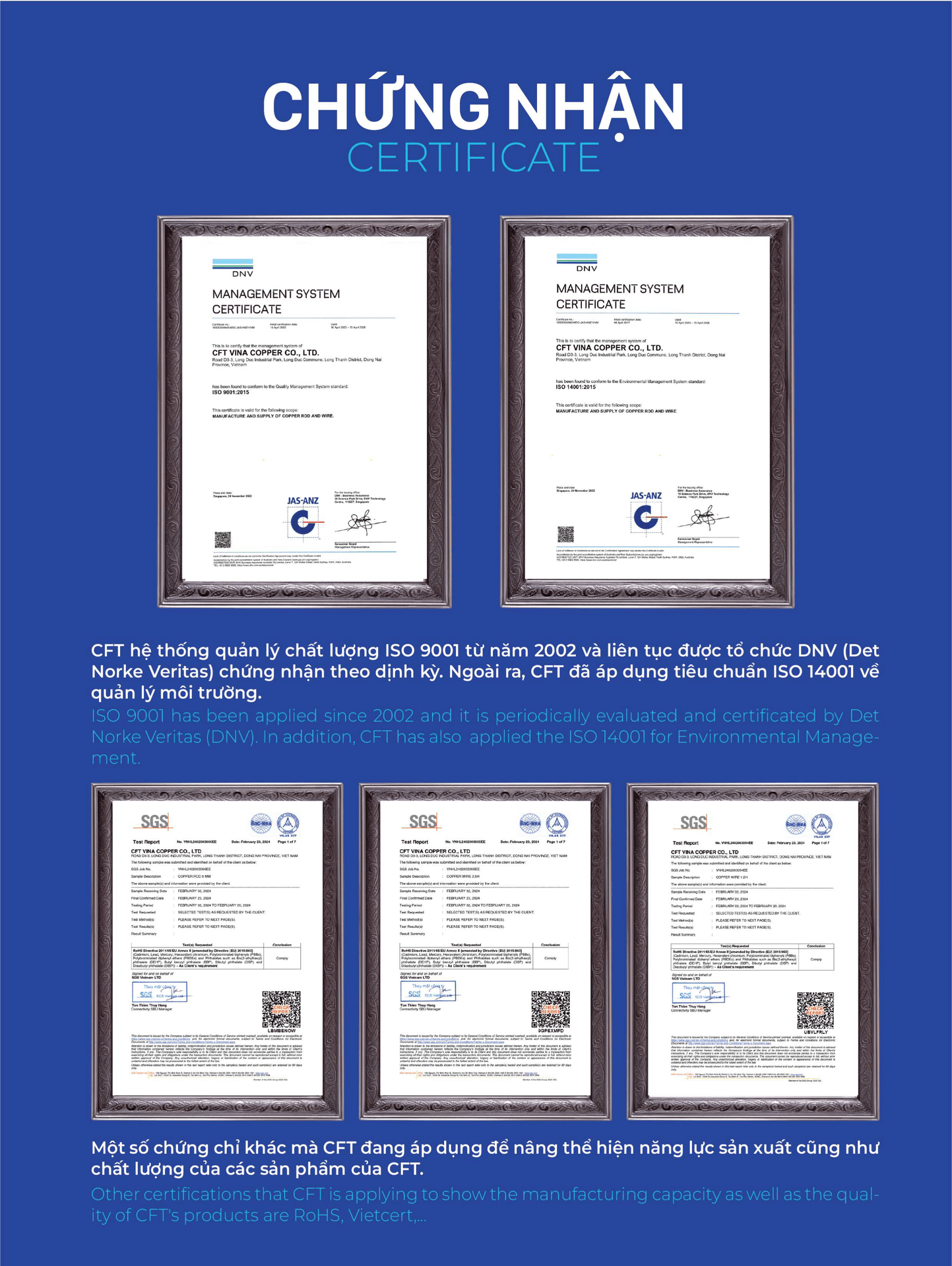 Công ty dây đồng Việt Nam CFT được thành lập vào ngày 27/05/1996, tiền thân là Công ty liên doanh giữa Cadivi, Furukawa và Tomen. Việc liên doanh với các đối tác Nhật Bản đã thúc đẩy việc chuyển giao công nghệ, kỹ thuật và cách quản lý chuyên nghiệp. Từ tháng 10 năm 2020, Công Ty Cổ Phần Điện Lực Gelex đã chính thức sở hữu 100% vốn CFT, đánh dấu một phát triển mới của CFT.